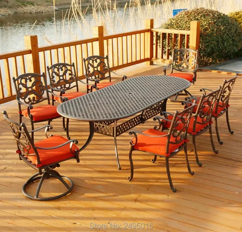 9 Cái Bộ nhôm đúc sân vườn Bàn hình bầu dục chất lượng cao với 8 ghế Nội thất sang trọng Bộ bàn ăn ngoài trời mọi thời tiết thiết kế tốtSố chỗ ngồi:6 trở lên Ngoại hình:Phong cách hiện đại Phong cách:Tối giản Hiện đại is_customized:No Số hiệu:9191TC Loại kim loại:Nhôm Gấp:Không Chất liệu:Kim loại Xuất xứ:Trung Quốc đại lục Sử dụng cụ thể:Bộ sân vườn Sử dụng chung:Nội thất ngoài trời