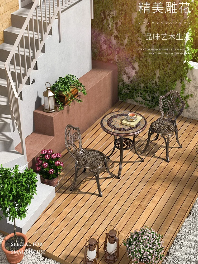 Outdoor balcony cast aluminum wrought iron table and chair set courtyard garden leisure simple aluminum table and chair set