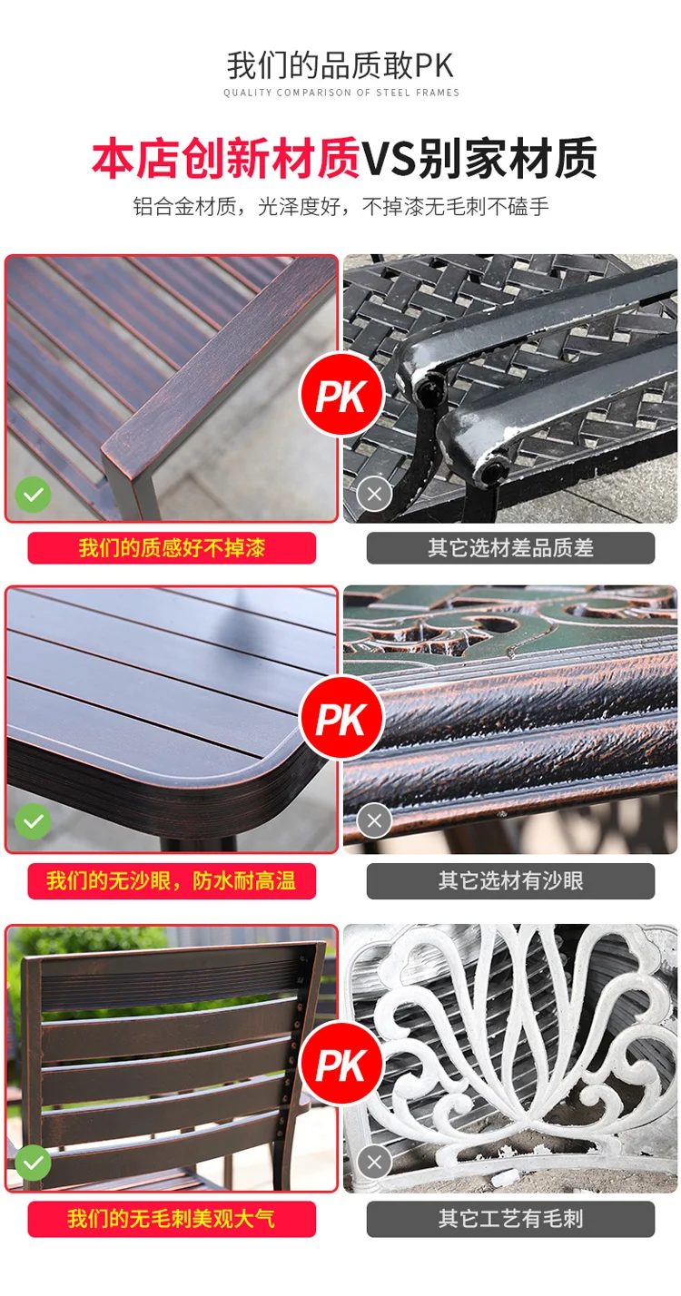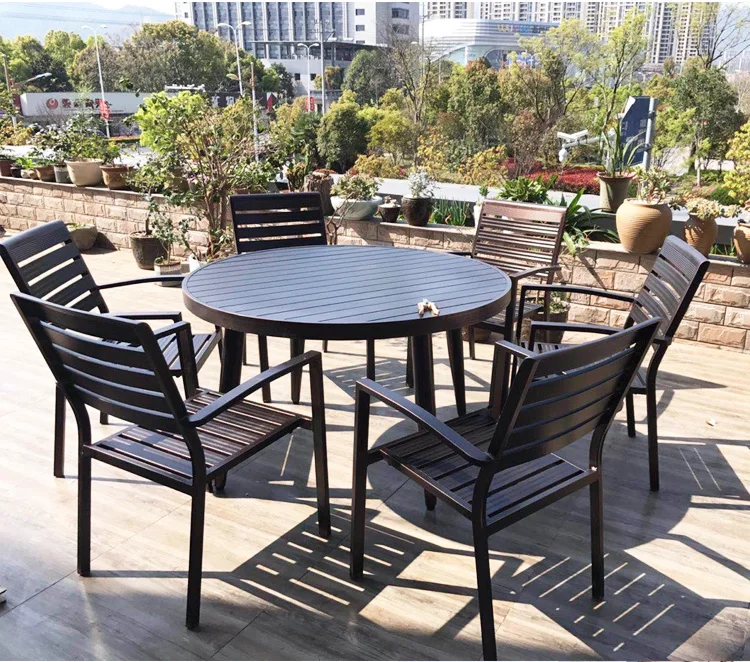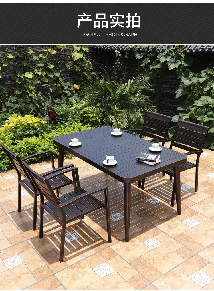 Bàn ghế ngoài trời nhôm đúc gỗ nhựa hợp kim nhôm có thể gập lại chống nước chống tia cực tím Nội thất bàn ghếCó tay vịn:CÓ Phong cách:Tối giản Hiện đại được tùy chỉnh:Có Loại kim loại:Nhôm Gấp:Không Chất liệu:Kim loại Xuất xứ:Trung Quốc đại lục Sử dụng cụ thể:Ghế sân vườn Sử dụng chung:Nội thất ngoài trời