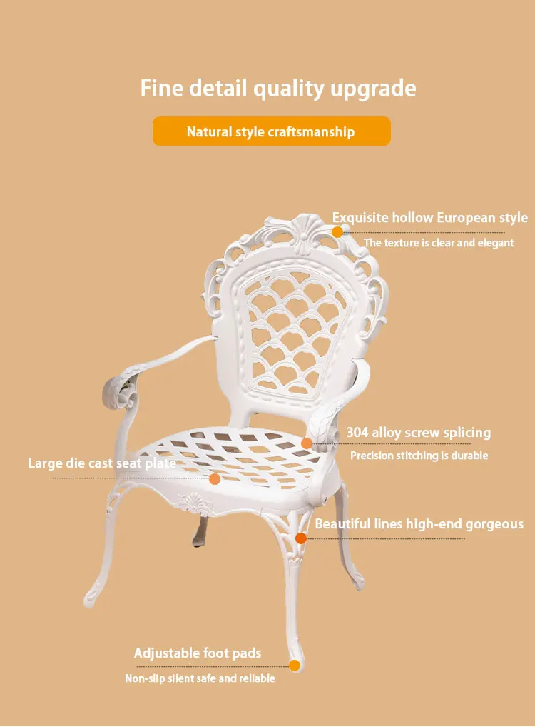 Bàn ghế nhôm đúc ngoài trời, ban công ngoài trời, ghế chống nước, chống nắng và giải trí phong cách Châu ÂuPhong cách:Tối giản Hiện đại được tùy chỉnh:Có Loại kim loại:Nhôm Gấp:Có Chất liệu:Kim loại Xuất xứ:Trung Quốc Đại lục Công dụng cụ thể:Ghế sân vườn Sử dụng chung:Nội thất ngoài trời