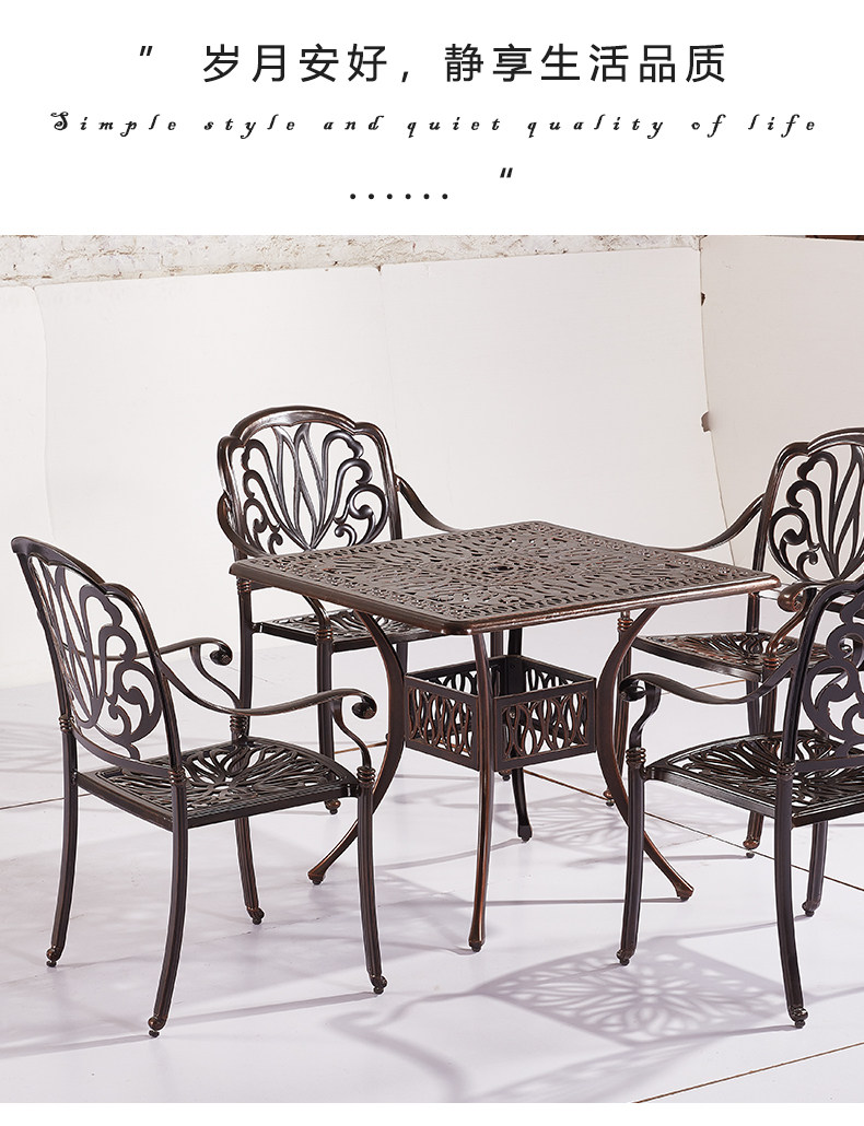 Bàn ghế sân vườn hình vuông. Bàn ghế nhôm đúc nhập khẩu. Bàn ghế sân vườn nhôm đúc nhập khẩu sơn tĩnh điện để ngoài trời. Sản phẩm cao cấp nhập khẩu từ Trung Quốc, nơi có truyền thống sản xuất lâu năm, công nghệ hiện đại và kinh nghiệm xuất khẩu hàng hoá.
