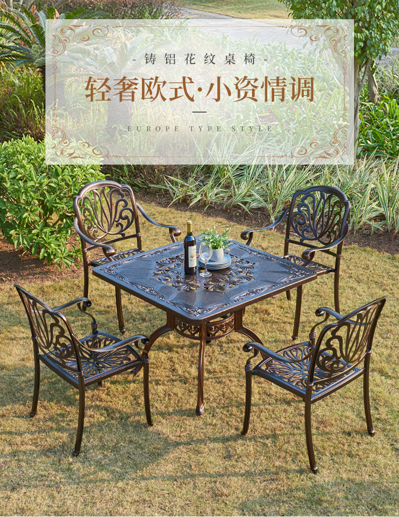 Hình ảnh bàn sân vườn nhôm đúc hình vuông nhập khẩu