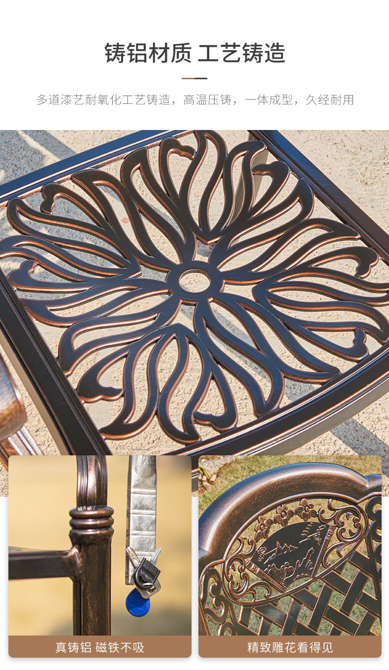 Bàn sân vườn nhôm đúc hình vuông nhập khẩu. Bàn ghế sân vườn nhôm đúc nhập khẩu sơn tĩnh điện để ngoài trời. Sản phẩm cao cấp nhập khẩu từ Trung Quốc, nơi có truyền thống sản xuất lâu năm, công nghệ hiện đại và kinh nghiệm xuất khẩu hàng hoá.