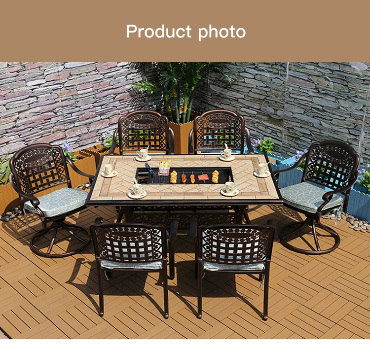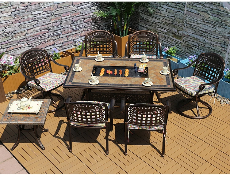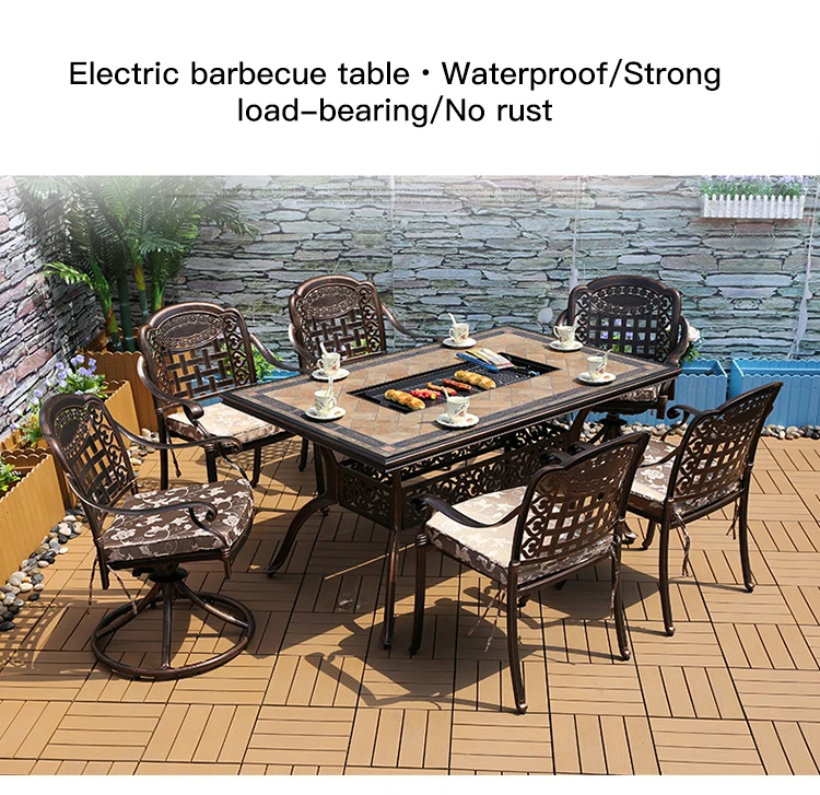 Electric Barbecue Grill Camping Table And Chairs Outdoor Courtyard Garden Villa Leisure European Balcony Cast Aluminum Furniture