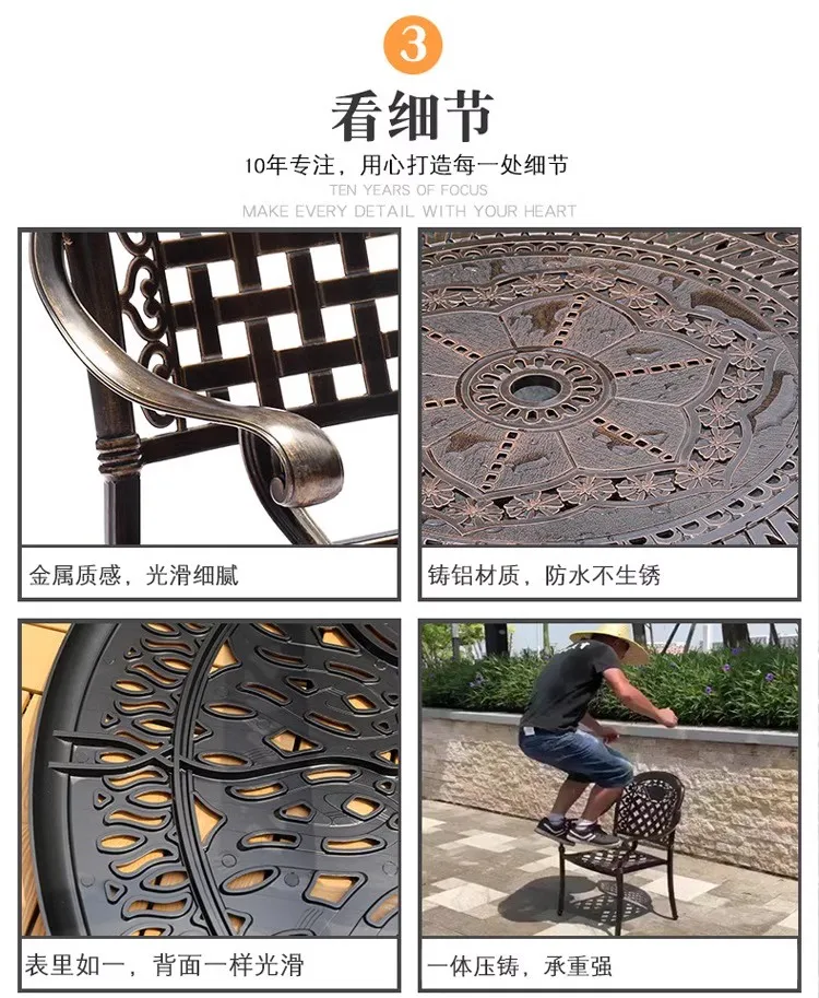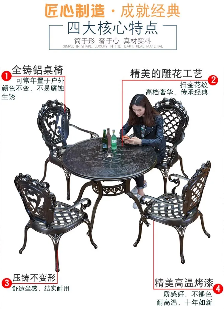 Bộ bàn ghế ngoài trời bằng nhôm đúc ban công chống nước kết hợp Biệt thự sáng tạo sân vườn Sắt rèn giải tríNgoại hình:Phong cách hiện đại Phong cách:Châu Âu Và Châu Mỹ Loại kim loại:Nhôm Chất liệu:Kim loại Xuất xứ:Trung Quốc đại lục Công dụng cụ thể:Bộ sân vườn Sử dụng chung:Nội thất ngoài trời