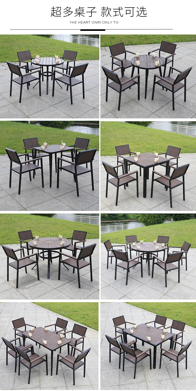 Nội thất hiên ngoài trời Bàn ghế giải trí gỗ nhựa kết hợp hợp kim nhôm quán cà phê ngoài trời nhôm đúc carbonis_customized:Không gấp:Không Xuất xứ:Trung Quốc đại lục Công dụng cụ thể:Bộ làm vườn Sử dụng chung:Nội thất ngoài trời