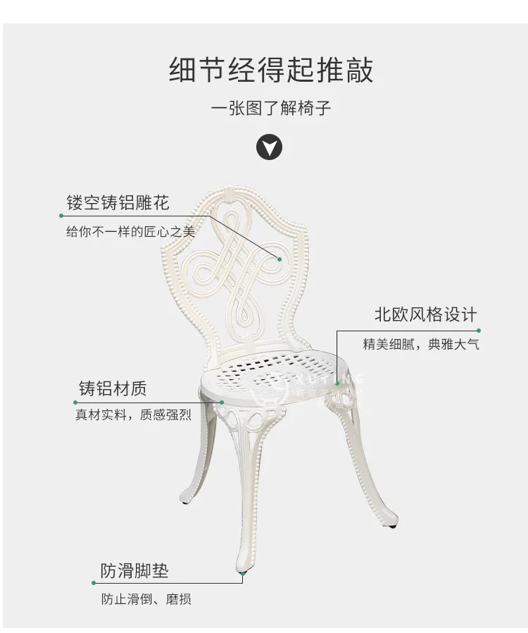 Sân Bàn ghế ban công giải trí ngoài trời Bàn ghế kết hợp sân vườn Nội thất sắt đúc nhôm Châu ÂuVới tay vịn:không Ngoại hình:Cổ is_customized:Có Gấp:Không Xuất xứ:Trung Quốc đại lục Công dụng cụ thể:Ghế bãi biển Sử dụng chung:Nội thất ngoài trời